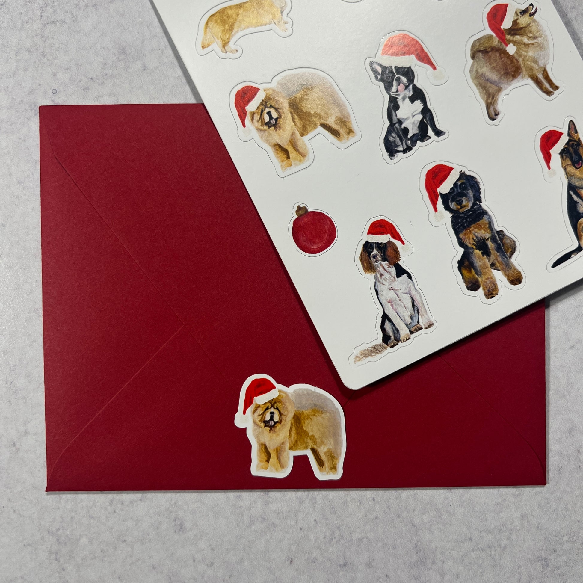 Get your festive fix with these fun-sized stickers for sprucing up your cards and envelopes! Each 4" L × 6" W sheet comes with 13 stickers, printed in full color on sturdy white paper. Showcasing a variety of breeds like Corgis, Dachshunds, Shiba Inus, and more, these stickers also feature charming elements like a pine bough and Christmas ornaments. Proudly made in the USA.
