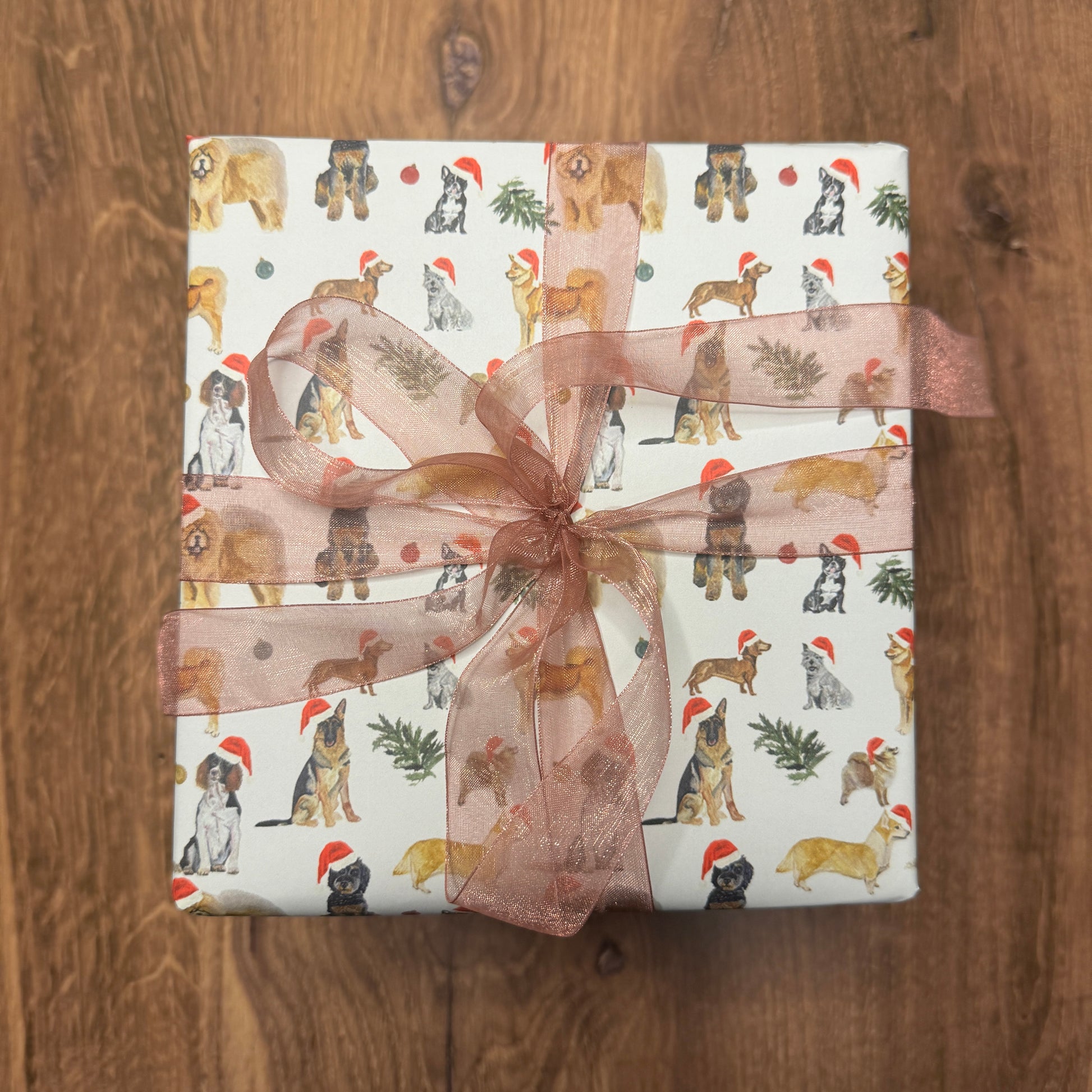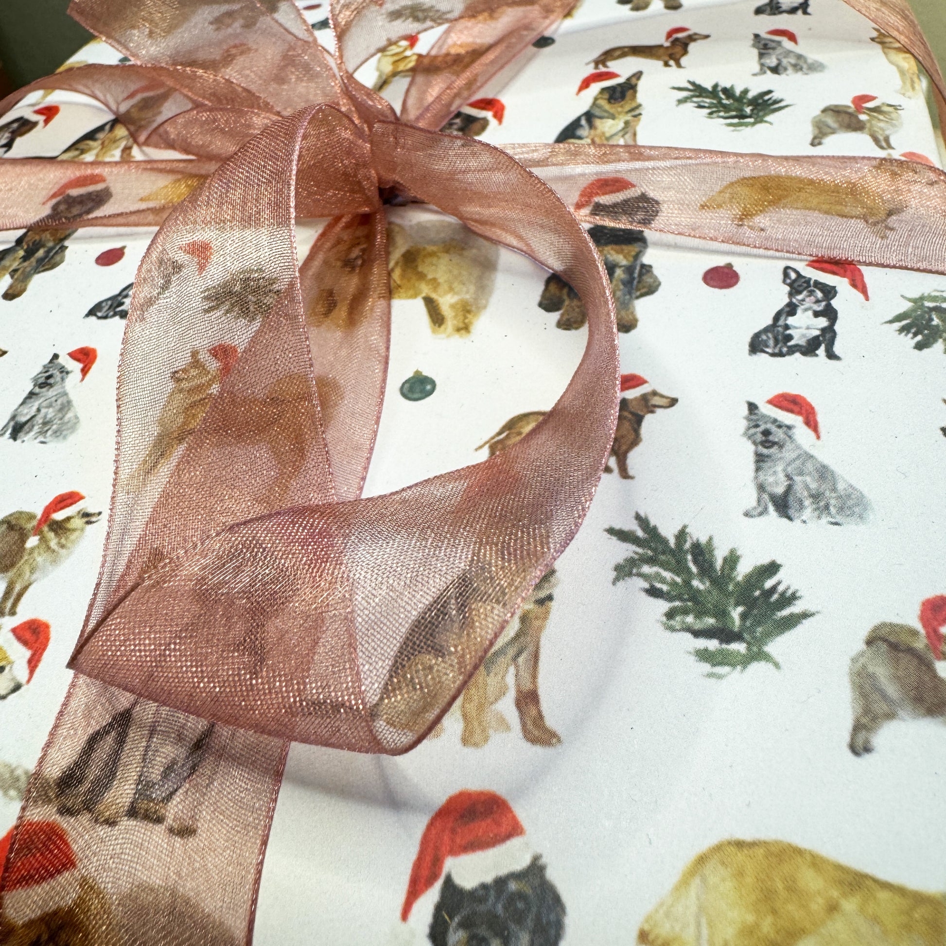 Indulge in the cuteness overload of your canine companions. Vibrantly printed wrapping paper made from cotton archival paper and ink, perfect for spreading holiday cheer. Includes 3 sheets measuring 20"L x 29"W, folded to 10" x 7 1/4" and packaged in a protective plastic sleeve. Proudly made in the USA.